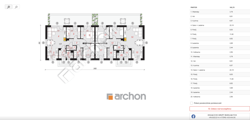 • Powierzchnia użytkowa jednego domu: 80,4 m²