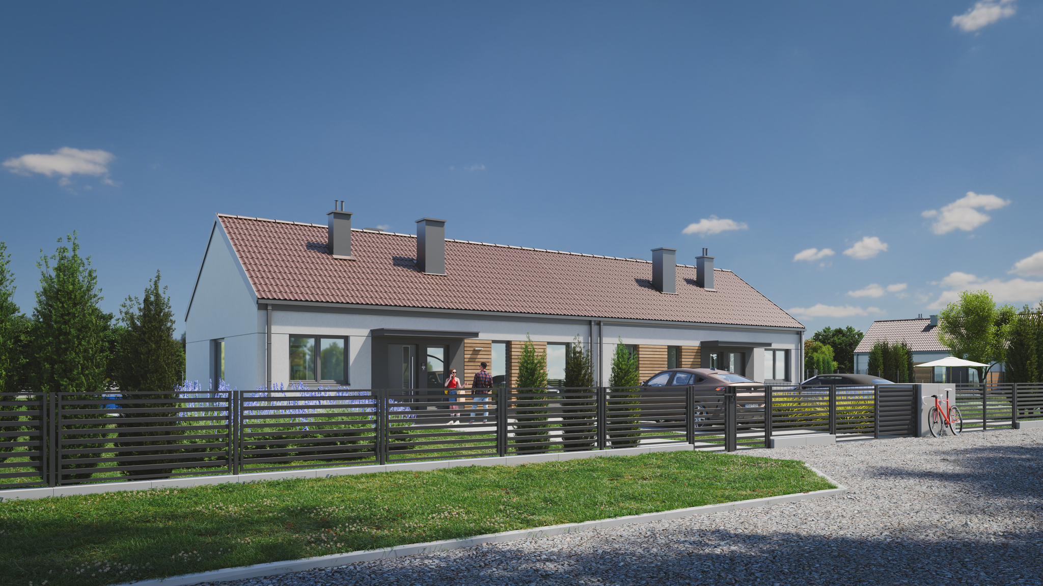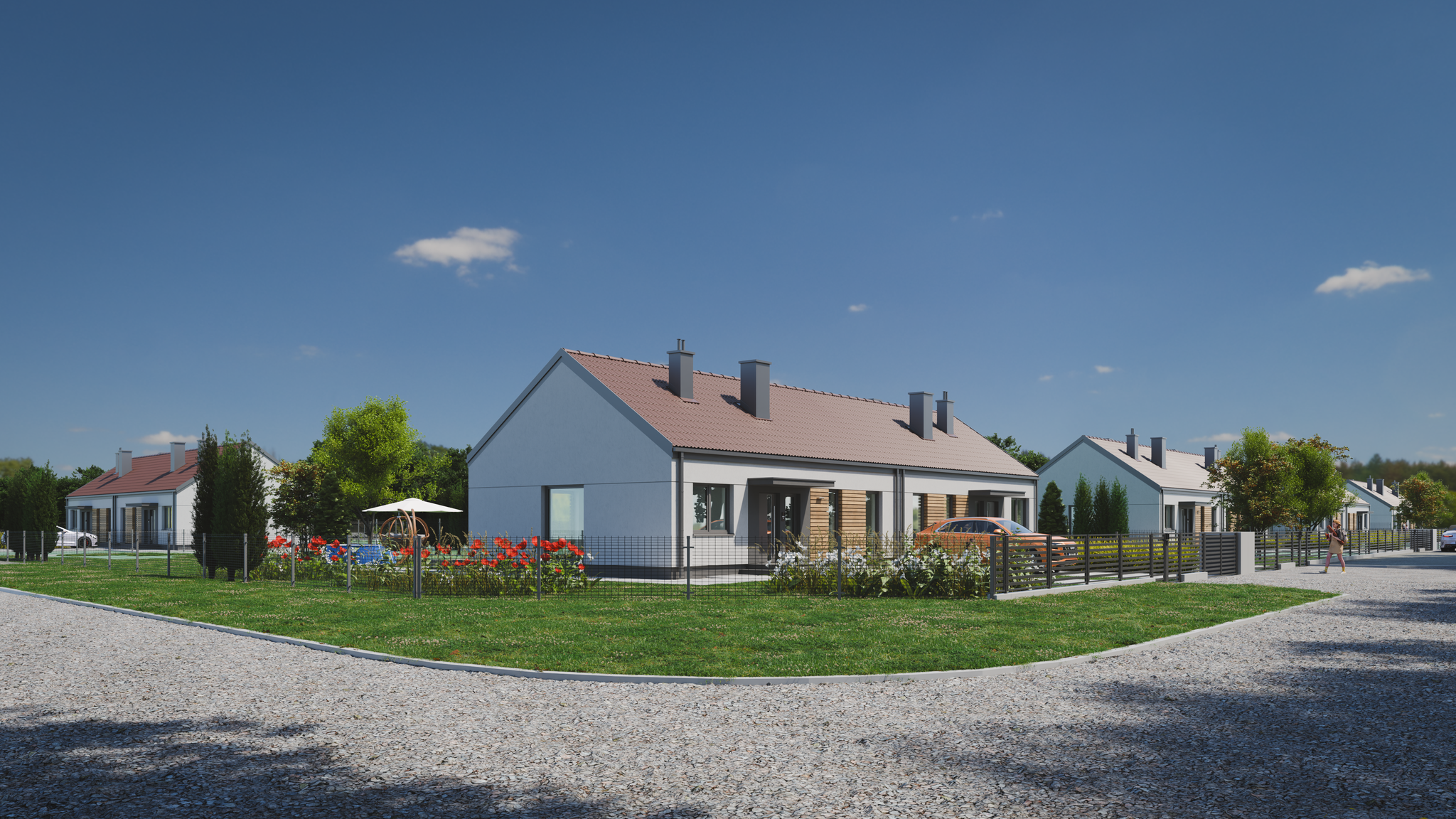 Całe osiedle składa się z 5 samodzielnych domów jednorodzinnych dwulokalowych-10 samodzielnych unitów, które tworzą kameralną, spokojną przestrzeń do życia.